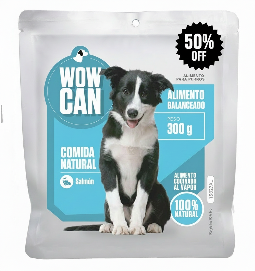 Wow Can Salmón-Pollo es un alimento cocido al vapor y formulado para perros de todas las razas y edades, ofreciendo una nutrición completa y balanceada que es mucho más beneficiosa que los alimentos procesados tradicionales. Gracias a su fórmula natural, sin conservantes, aditivos ni saborizantes artificiales, Wow Can Salmón-Pollo es ideal para mejorar la salud general de tu perro y no requiere congelación, lo cual lo hace práctico y fácil de usar.