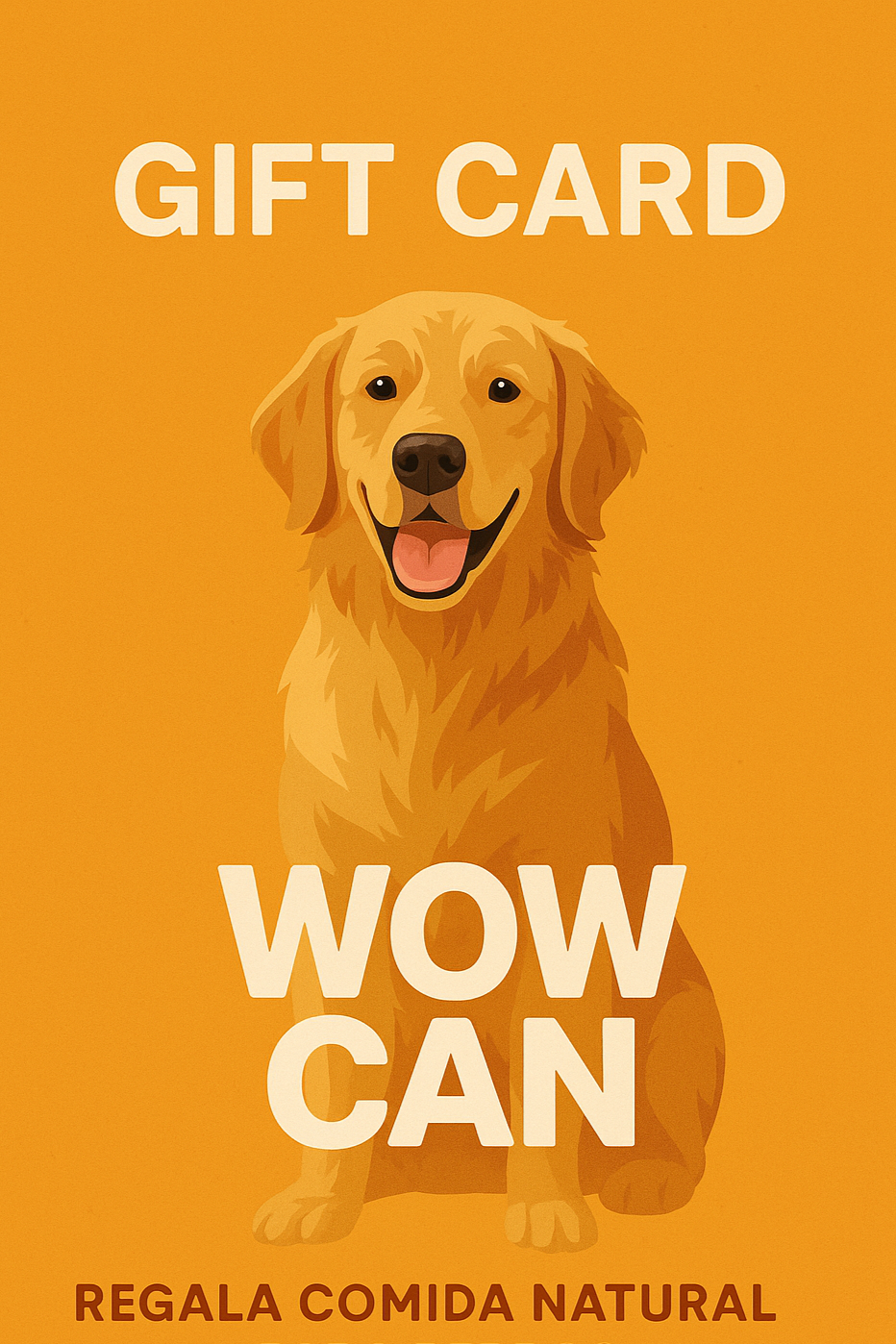 ¡Sorprende a esa persona especial para que consienta a su peludo con lo mejor de Wow Can! Regálale una Gift Card para que su mascota disfrute de la mejor alimentación natural.